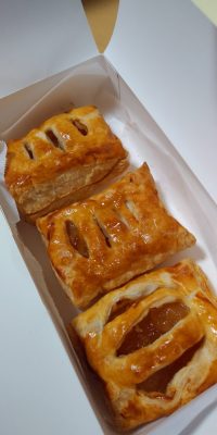 「箱の大きさに合わせて焼いたから、形は不揃いだけど、味はいいよ~」